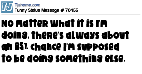 X No matter what it is I'm doing, there's always about an 85% chance I'm supposed to be doing something else.