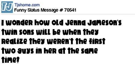 X is I wonder how old Jenna Jameson's twin sons will be when they realize they weren't the first two guys in her at the same time?