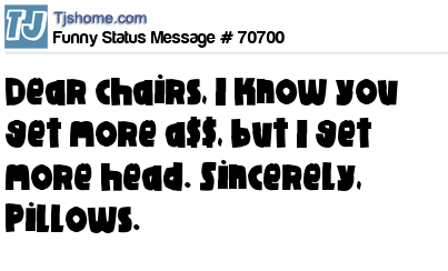 X Dear chairs, I know you get more a$$, but I get more head. Sincerely, Pillows.