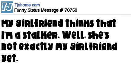 - # 71072 My girlfriend thinks I'm a stalker, Well, she's not actually my girlfriend yet.