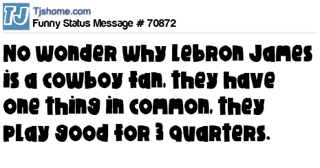 X is No wonder why Lebron James is a cowboy fan, they have one thing in common, they play good for 3 quarters.