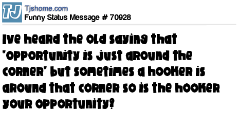 X ive heard the old saying that "opportunity is just around the corner" but sometimes a hooker is around that corner so is the hooker your opportunity?