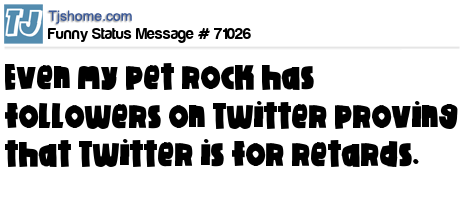 X says Even my pet rock has followers on Twitter proving that Twitter is for retards.