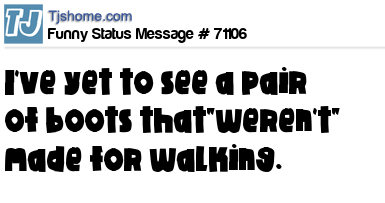 - # 84985 Those boots are made for walking? Wow, so are most boots. Give me a call when they're made for castrating antelope or something.