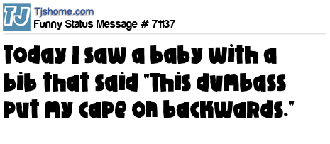 - # 69173 Today I saw a baby with a bib that said “This dumba$$ put my cape on backwards.”