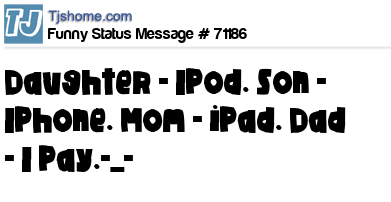 - # 69729 Daughter: iPod.... Son: iPhone.......Mom: iPad.......Dad: iPay