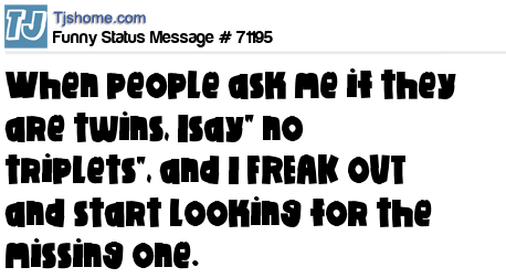 X says when people ask me if they are twins, Isay" no triplets", and I FREAK OUT and start looking for the missing one.