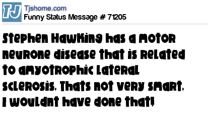 X is Stephen Hawking has a motor neurone disease that is related to amyotrophic lateral sclerosis, Thats not very smart, I wouldnt have done that!