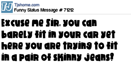 X says Excuse me Sir, you can barely fit in your car yet here you are trying to fit in a pair of skinny jeans?