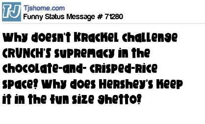 X Why doesn't Krackel challenge CRUNCH'S supremacy in the chocolate-and- crisped-rice space? Why does Hershey's keep it in the fun size ghetto?