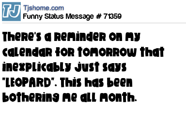 X There's a reminder on my calendar for tomorrow that inexplicably just says "LEOPARD". This has been bothering me all month.