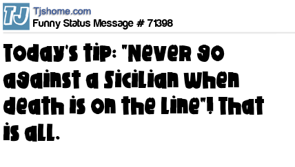 X Today's tip: "Never go against a Sicilian when death is on the line"! That is all.