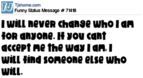 X says I will never change who I am for anyone. If you cant accept me the way I am, I will find someone else who will.