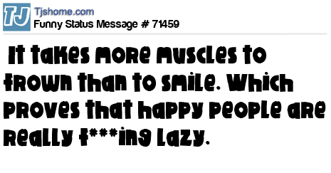 - # 80613 It takes 22 muscles to smile and 37 muscles to frown. That means I'm working out harder than you, Mr. F*cking Happy.