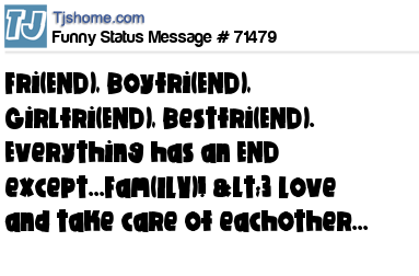 X says Fri(END), Boyfri(END), Girlfri(END), Bestfri(END). Everything has an END except...Fam(ILY)! <3 Love and take care of eachother...