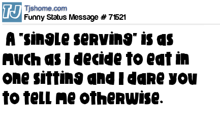 X A "single serving" is as much as I decide to eat in one sitting and I dare you to tell me otherwise.