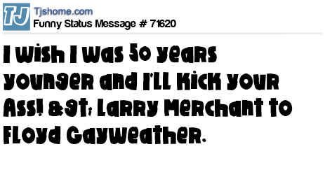 X  I wish I was 50 years younger and I'll kick your Ass! > Larry Merchant to Floyd Gayweather.