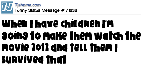 - # 89991 When I have kids i`m going to make them watch the 2012 movie & tell them, "Yup, I survived that!" ...