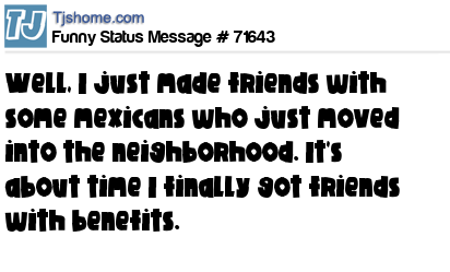 X is Well, I just made friends with some mexicans who just moved into the neighborhood. It's about time I finally got friends with benefits.