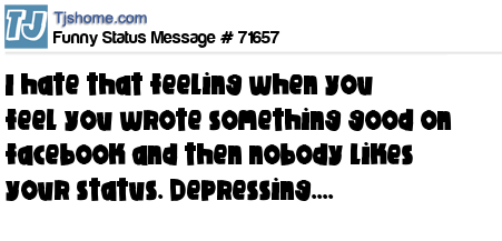 - # 73109 Its funny that when you put a depressing status on Facebook some people actually like it?.. "Im feeling down and going to jump off a bridge" ... 10 people like this?..WTF!!!
