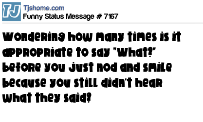- # 56454 wondering how many times is it appropriate to say "What?" before you just nod and smile because you still didn't hear what they said!!