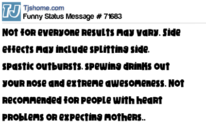 X is not for everyone results may vary. Side effects may include splitting side, spastic outbursts, spewing drinks out your nose and extreme awesomeness. Not recommended for people with heart problems or expecting mothers..