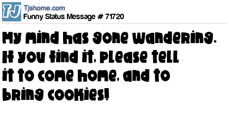 X My mind has gone wandering. If you find it, please tell it to come home, and to bring cookies!
