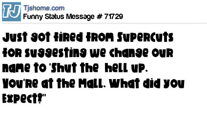 X Just got fired from SuperCuts for suggesting we change our name to 'Shut the hell up. You're at the Mall. What did you Expect?''