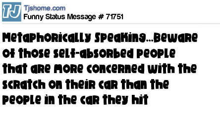 X is Metaphorically Speaking...Beware of those self-absorbed people that are more concerned with the scratch on their car than the people in the car they hit
