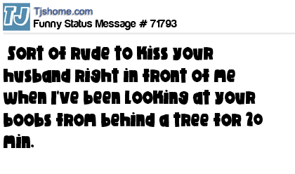 X says Sort of rude to kiss your husband right in front of me when I've been looking at your boobs from behind a tree for 20 min.