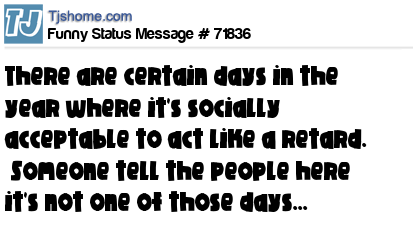 X says There are certain days in the year where it's socially acceptable to act like a retard. Someone tell the people here it's not one of those days...