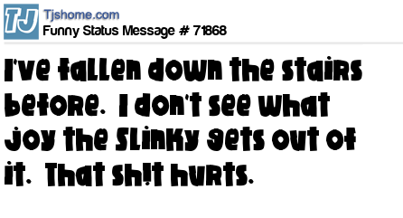 X I've fallen down the stairs before. I don't see what joy the Slinky gets out of it. That sh!t hurts.