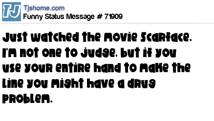 X Just watched the movie Scarface. I'm not one to judge, but if you use your entire hand to make the line you might have a drug problem.