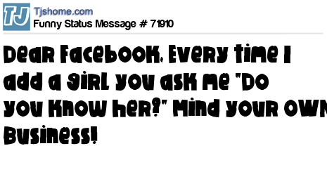 X says Dear Facebook, Every time I add a girl you ask me "Do you know her?" Mind your OWN Business!