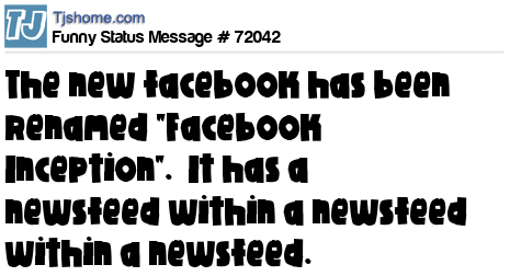 X The new facebook has been renamed "Facebook Inception". It has a newsfeed within a newsfeed within a newsfeed.