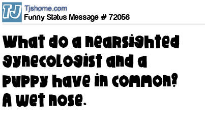 - # 166440 What do a nearsighted gynecologist and a puppy have in common? A wet nose.