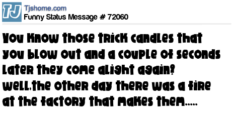 X says you know those trick candles that you blow out and a couple of seconds later they come alight again? well,the other day there was a fire at the factory that makes them.....
