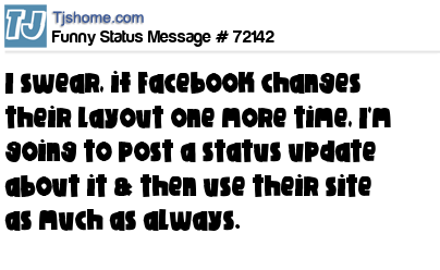 X is I swear, if Facebook changes their layout one more time, I'm going to post a status update about it & then use their site as much as always.