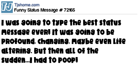 X I was going to type the best status message ever! It was going to be profound, changing, maybe even life altering. But then all of the sudden...I had to poop!