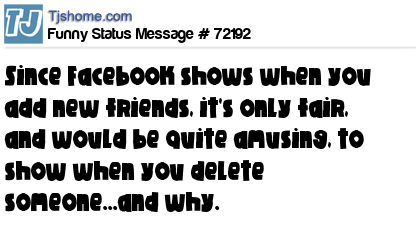 X says Since Facebook shows when you add new friends, it's only fair, and would be quite amusing, to show when you delete someone...and why.