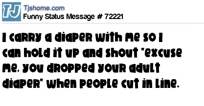 X says I carry a diaper with me so I can hold it up and shout "excuse me, you dropped your adult diaper" when people cut in line.