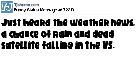 X  just heard the weather news, a chance of rain and dead satellite falling in the US.