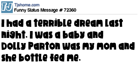 - # 150373 I had a nightmare last night. I dreamed Dolly Parton was my mother and I was a bottle baby.