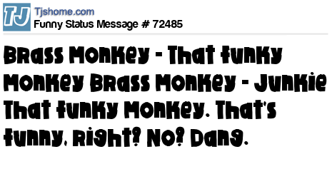 X Brass Monkey - That funky Monkey Brass Monkey - Junkie That funky Monkey. That's funny, right? No? Dang.