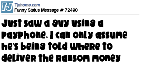 - # 66095 Just saw a guy using a payphone. I can only assume he's being told where to deliver the ransom money.