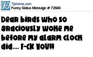 X is Dear birds who so graciously woke me before my alarm clock did.... F-CK YOU!!