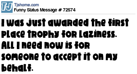 X I was just awarded the first place trophy for laziness. All I need now is for someone to accept it on my behalf.