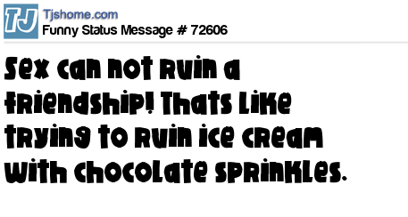 - # 72864 Ladies.... you cannot ruin friendship with sex.... thats like trying to ruin ice cream with chocolate syrup.... which btw does not ruin sex either