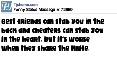 X says Best friends can stab you in the back and cheaters can stab you in the heart. But it's worse when they share the knife.