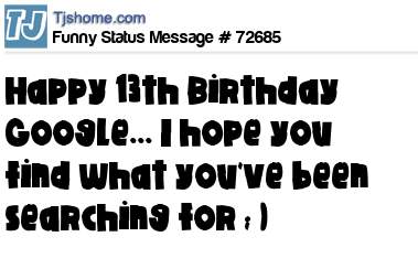 - # 72689 Google became a teenager today, so prepare yourself for it to become unreliable, moody, and unresponsive to your questions. Happy 13th BDay Google